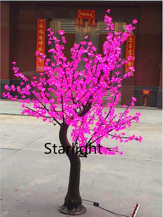 Cherry Blossom Tree Lighted. LED Cherry Blossom Tree 6.5ft/2.0м 1728 LEDs magic of leds Decorated with 104 LED lights, each light is covered with blossom flower Features: Pre-lit with 280 LED mini lights Bulb color: green Bulb size: concave wide angle Flower color: clear Hand wrapped stems and trunk Includes black tree stand Branches are bendable to help accommodate your decorating needs UL listed for indoor use only Black adaptor.